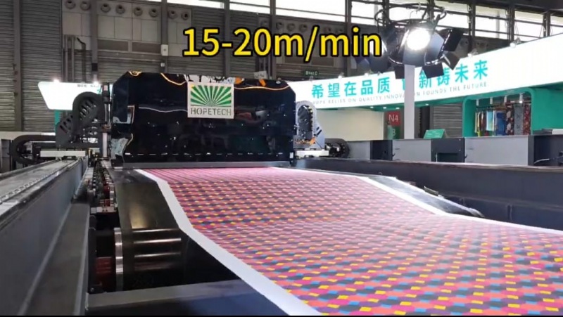 1. Equipped with Kyocera EX600RC head, printing resolution is good and stable. 2. Production speed is fast 3. 128 heads for 1.7 Meter width Printing, 96 heads for 1.20 Meter width printing. 4. This machine can print single pass and multi pass darker and lighter both colors.
