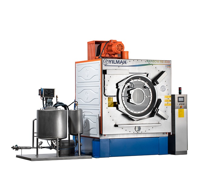 Our brand new garment dyeing machine Rainbow allows dyeing at a decreased liquor ratio by the help of a second external drum which prevents the water in the machine leave the inner drum. The second external drum which covers the inner drum keeps the product inside water at all times. This both enables a healthier dyeing process and prevents outwearing of the product by decreasing friction. Rainbow dyeing machine is suitable for all kinds of dyeing. Advantages: ‧ For water saving, it dyes at a 1:2 liquor ratio without using any pump and filter. Thus it is less energy consuming than other decreased liquor ratio dyeing machines, easier to maintain and use. ‧ It saves water 70% more compared to conventional methods and 30% more compared to jet spray machines. ‧ It saves 50% chemical and up to 15% dye compared to other front loading machines. ‧ It can be loaded with 30% more products compared to other front loading machines, thus increases productivity. ‧ For water saving, it dyes at a 1:2