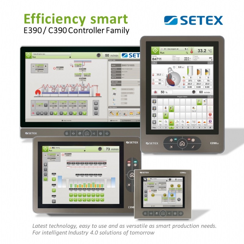 Intelligent automation hardware and software for dyeing and finishing machines. SETEX controllers are designed to unlock more performance, consistency and transparency from existing dyeing and finishing machines. They help mills stabilize processes, standardize operation and improve daily control across different machine types. The E390x controller family supports smart dyeing automation, while the C390x platform adds standardized finishing automation. Functions such as recipe execution, operator guidance, process monitoring and integrated production and energy data help reduce variability, improve reproducibility and support faster decisions in running production. By linking operational technology with OrgaTEX MES, SETEX controllers create the basis for connected production workflows, reliable batch comparison and targeted modernization step by step. Existing machines can be upgraded step by step to enhance performance and connectivity without replacing entire production lines.