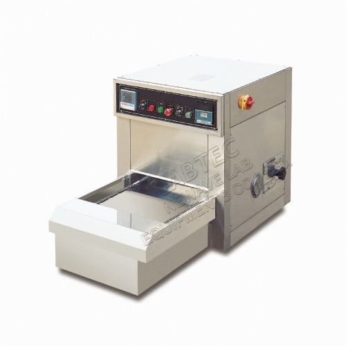 The IR dyer is a compact desktop dyeing machine providing a versatile and cleaner method of sample dyeing, the dye pots are heated from the top by infra-red radiators. The inclined angle of the dye pots to the rotary disc is specially designed to have a good liquor circulation by the rotation of the disc.