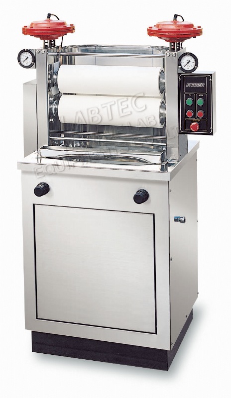 It uses compressed air to move the rubber rolling wheel. The pick-up rate can be adjusted to match the production line. It suits the tests of dyestuff, pigment, auxiliary chemical and resin. When it is in conjunction with Laboratory Stereotypes dryer(M-3) or laboratory tenter(M-6), value-added sample can be produced and submitted to customer. Specification of roller:NBR rubber coated, with 125 mm diameter, 450 mm length. Hardness of roller:70 ± 2 degrees and the pressure resistance is 6kg/cm2 Speed of roller rotation:10~12RPM (Speed adjustor is optional) Adjustment of pressure:One pair of pressure regulator valves. They can adjust the roller pressure individually on right/left side. Two pressure indicator. Safety device:Emergency button switch and knee pedal touch. Models specification:P-AO,P-BO,P-AI,P-BI Air compressor is optional. Dimension:P-A W92 x D61 x H145 cm P-B W92 x D62 x H125 cm