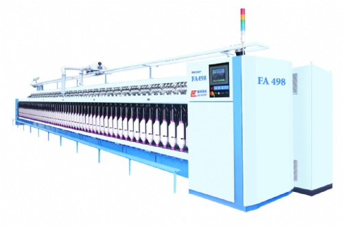 Model FA497/FA498 Computerized Roving Frame simplified the differential gear system and twist change gear on basis of FA493/FA494 roving frame,Adopts 4 frequency motors to drive rollers, flyers, bobbins and bottom rail lifting,and realizes precise proportional synchronizing action,It has advantages such as easy operation,high automatic degree,high resultant yarn quality compare with three motors drive control. Accordig to user’s demand, the four motors can choose a servo motor, two servo motors, three servo motor or full servo motor drive. Equiped with auto lubricating unit, automaticl lubracating with fixed time and quantity. This structure is the most advance model for the four motors drive roving frame in domestic and aboard.